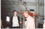 The 'sound proofing' interior of Duxford based Hastings TG528 in 2002, Tony Green being interviewed by a BBC Cambridgeshire reporter